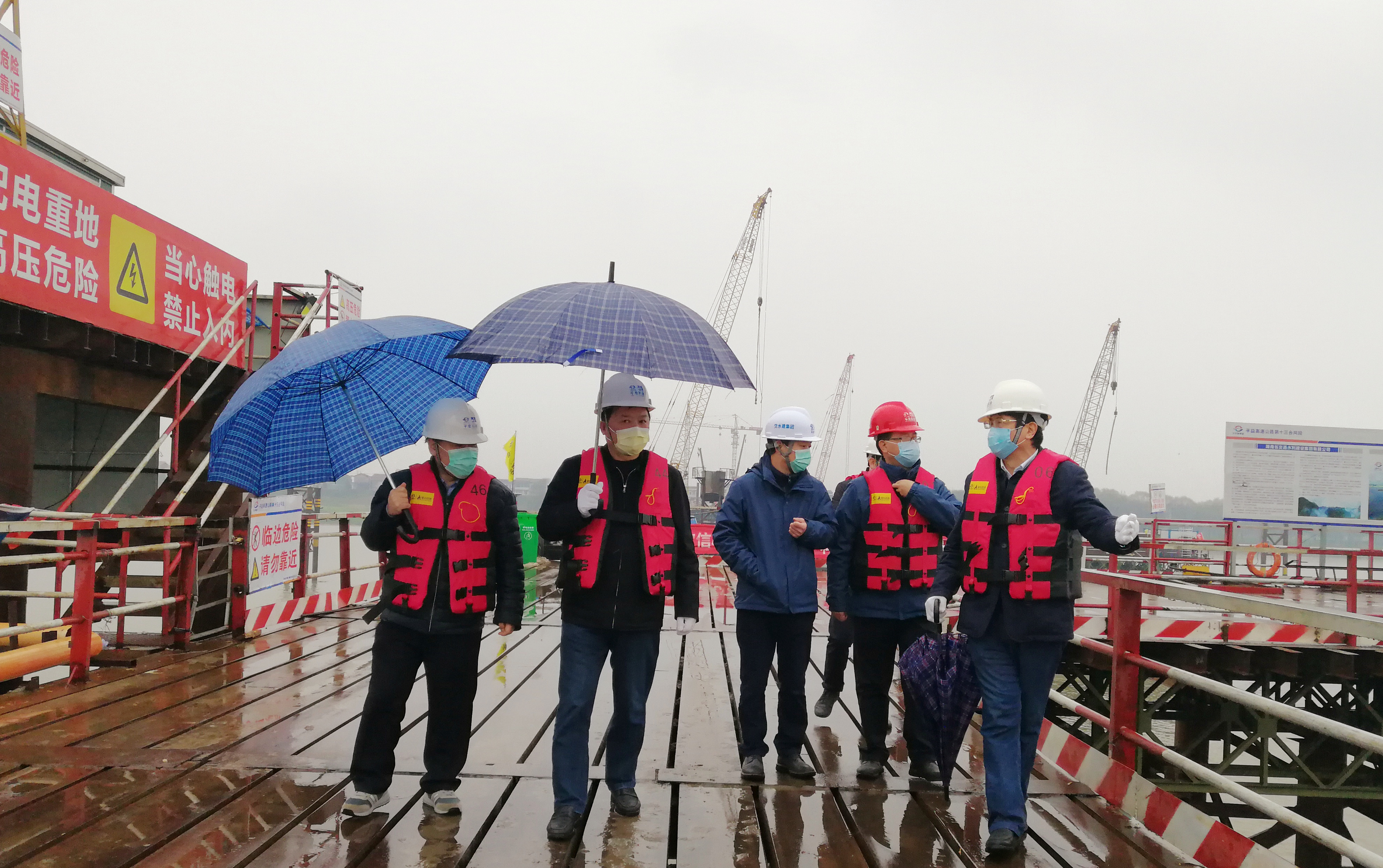 在13標(biāo),龔智輝一行來(lái)到白泥湖湘江特大橋東岸棧橋和施工平臺(tái),詳細(xì)詢(xún)問(wèn)了解項(xiàng)目當(dāng)前疫情防控措施的落實(shí)情況和項(xiàng)目復(fù)工建設(shè)進(jìn)度情況。龔智輝強(qiáng)調(diào),做好疫情防控工作責(zé)任重大,要堅(jiān)持把疫情防控作為當(dāng)前最重要的工作來(lái)抓,同時(shí)要統(tǒng)籌兼顧疫情防控和施工生產(chǎn),要一手抓疫情防控一手抓項(xiàng)目生產(chǎn),在打好疫情防控阻擊戰(zhàn)同時(shí)確保完成工程建設(shè)各項(xiàng)目標(biāo)任務(wù),確保兩手都要硬、兩“戰(zhàn)”都要贏。特別是現(xiàn)階段,要清醒認(rèn)識(shí)項(xiàng)目施工生產(chǎn)方面的困難和挑戰(zhàn),精準(zhǔn)把握項(xiàng)目推進(jìn)過(guò)程中的重點(diǎn)難點(diǎn)問(wèn)題,科學(xué)組織施工,合理分配工期,加大人力物力投入,加快建設(shè)進(jìn)度,抓好安全生產(chǎn),必須完成四月底之前主墩全部出水的節(jié)點(diǎn)目標(biāo)要求,確保工程按期保質(zhì)完成。