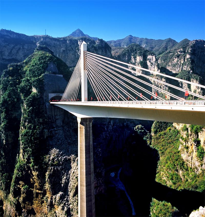 G55二廣高速山西段仙神河大橋,斜拉橋,橋墩高150.07米,2008年10月竣工通車,居同類型橋梁亞洲第一、世界第二,獲湖南省優(yōu)質(zhì)工程獎。